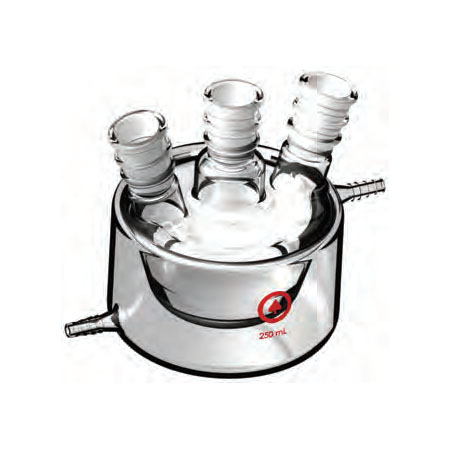 帶夾套的歐式反應(yīng)瓶, 反應(yīng)瓶為錐形, 較薄的底部夾層更適合使用磁力攪拌器攪拌, 也可以使用半月形的攪拌漿攪拌。易于清潔, 標(biāo)準(zhǔn)磨口。