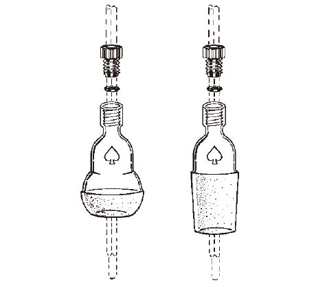 底部標準磨口或標準球口, 頂部為#7 Ace- 螺紋接口與尼龍螺紋套管配合使用, 用于密封安裝溫度計和導氣管等,該尼龍?zhí)坠軒ETFE O 型圈。10/10 標準磨口適配器與直徑為6.4mm的溫度計匹配, 其他的與直徑為7mm 的溫度計匹配。適合真空操作。套裝標配5029-10 尼龍?zhí)坠芎蚈 型圈。備選的O 型圈訂貨號為7855-704。