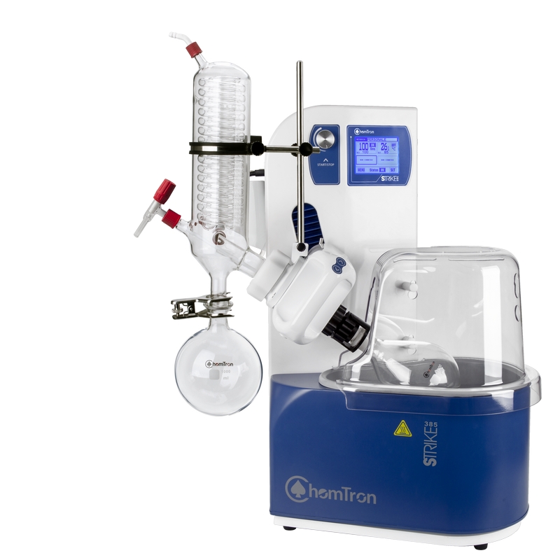 STRIKE 385 旋轉(zhuǎn)蒸發(fā)儀繼承了上一代產(chǎn)品的特點(diǎn)。大屏幕集成了加熱浴槽溫度,蒸汽溫度,轉(zhuǎn)速,真空度, 時(shí)間等參數(shù),同時(shí)可設(shè)置程序控制。能夠與優(yōu)萊博冷卻循環(huán)器,真空泵, 真空控制器,溶劑回收系統(tǒng) 等配套使用,為用戶提供整套解決方案。