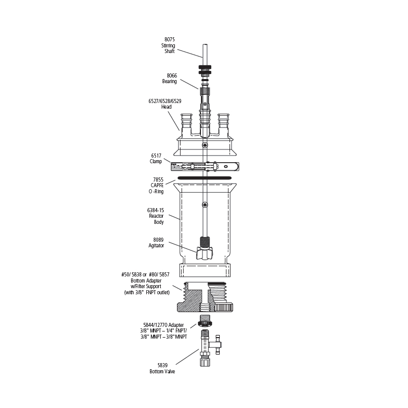 僅6000mL反應(yīng)釜釜體,Duran®型法蘭,頂部帶有O形凹槽,底部有ACE#50內(nèi)螺紋。壓力等級為35psig。 |