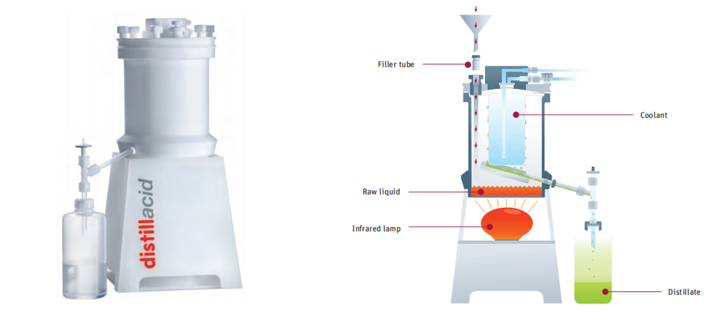 準備硝酸試劑,可使用BERGHOF Distillacid酸純化儀將分析純試劑自行制備優(yōu)級純或更高純度,無須購買昂貴的高純試劑